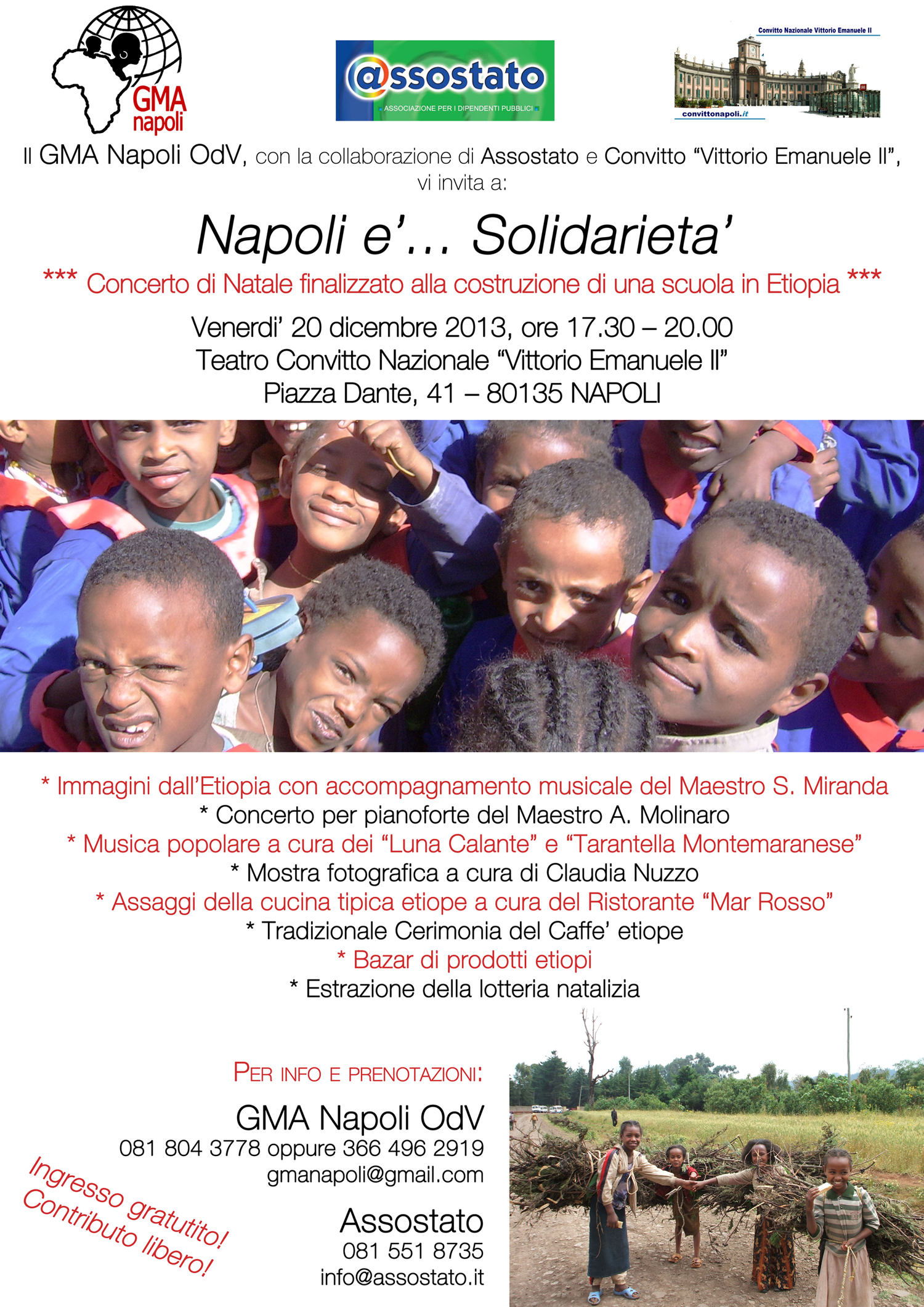 INTERCRAL CAMPANIA promuove l'iniziativa del sodalizio Assostato che in collaborazione con GMA Napoli e Convitto "Vittorio Emanuele II", vi invita a NAPOLI E'...SOLIDARIETA': concerto di natale finalizzato alla costruzione di una scuola in Etiopa.